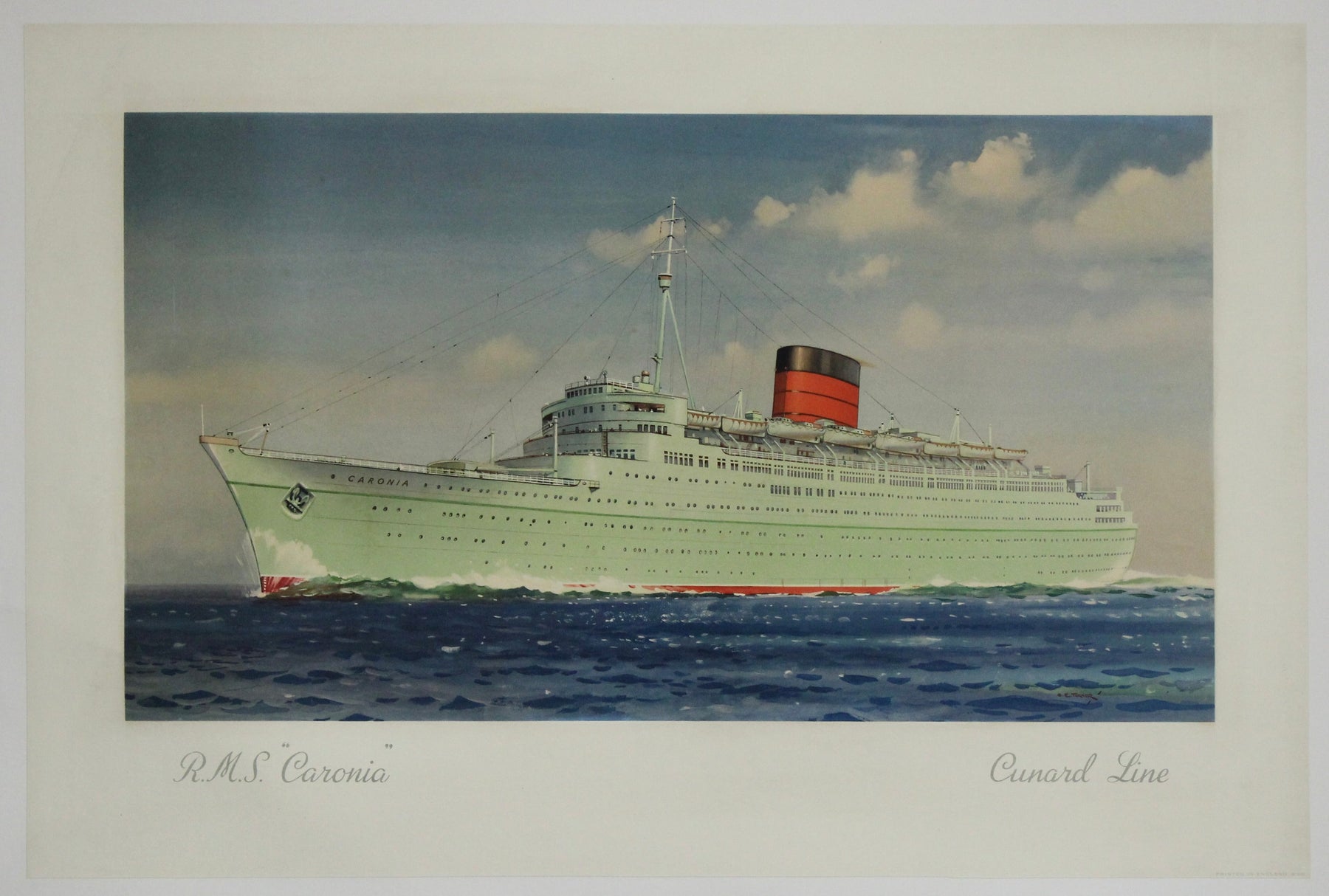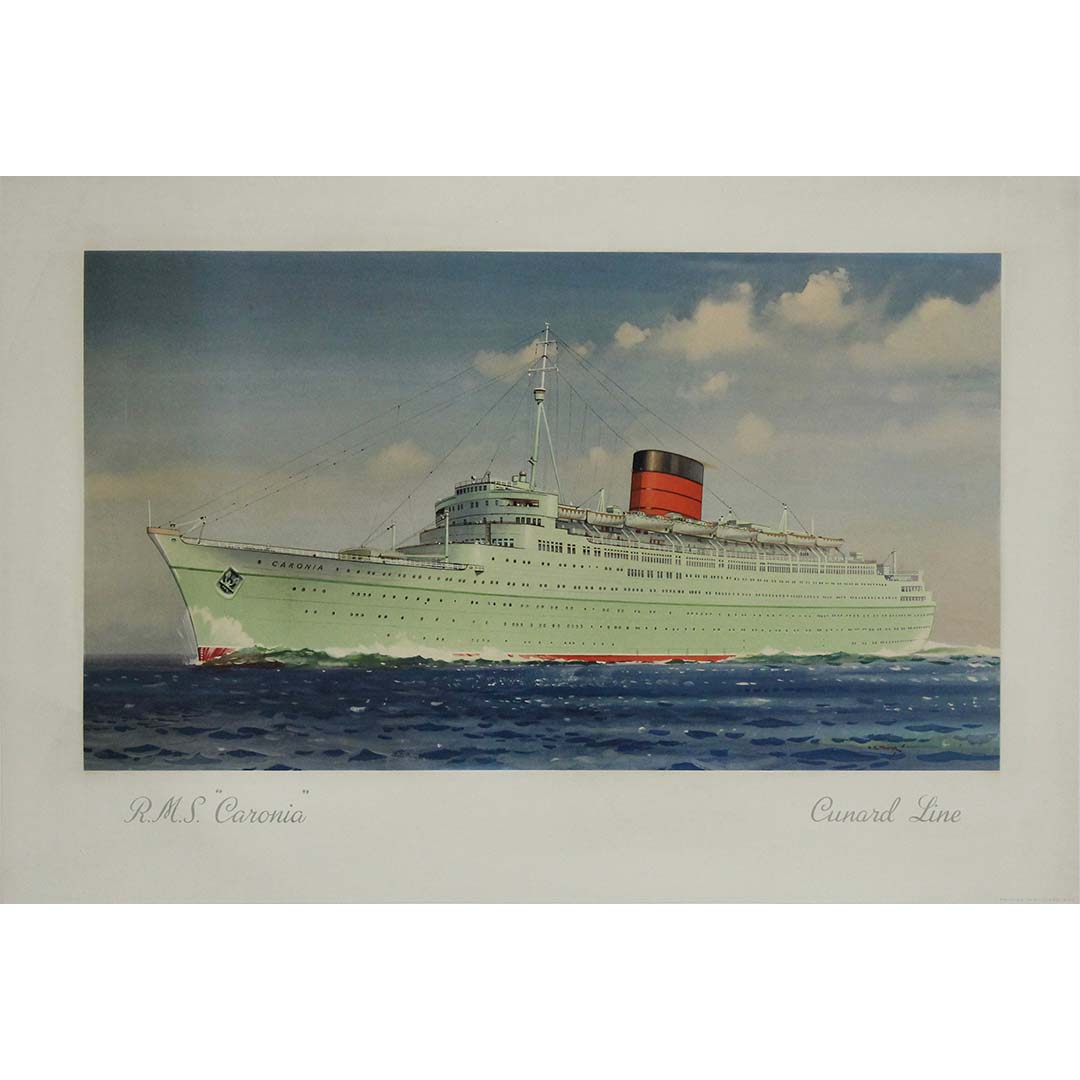 Charles Edward Turner, célèbre pour ses représentations détaillées et idéalisées de navires, immortalise le Caronia avec un réalisme et une élégance saisissants. Son utilisation de la lumière et du mouvement donne vie au paquebot, soulignant sa longueur, sa symétrie et sa puissance maritime. Des affiches comme celle-ci étaient utilisées par la Cunard pour promouvoir les voyages du paquebot, ornant les agences de voyages et les compagnies maritimes afin d'inspirer des rêves d'exploration du monde.