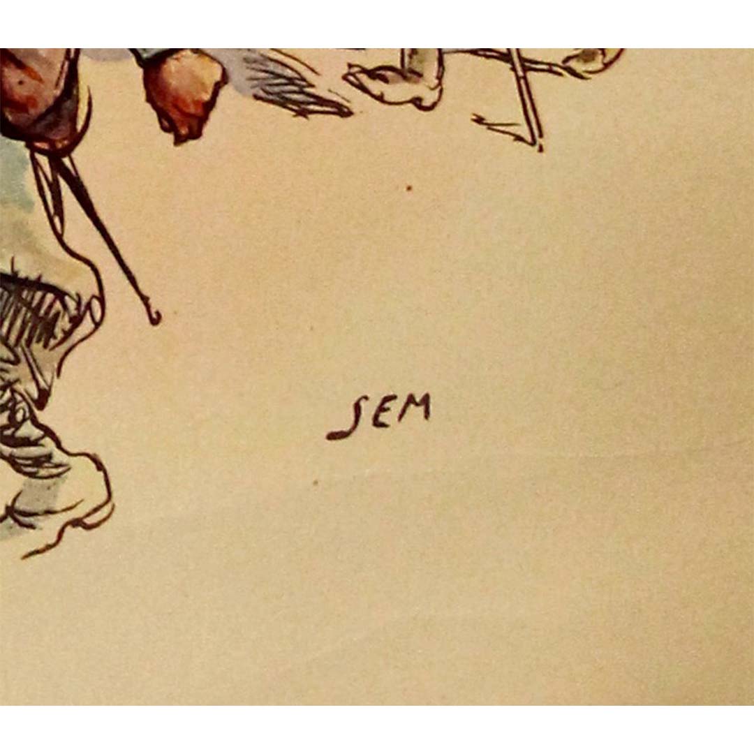 Sem, réputé pour son esprit et son élégance, délaisse la satire au profit de la révérence. Sa technique, à la fois illustration et exaltation, instaure un ton patriotique sans emphase, mêlant la grandeur classique à un trait léger et fluide. La foule et les nuages s'animent avec la même énergie, et l'Histoire elle-même semble emporter les soldats.