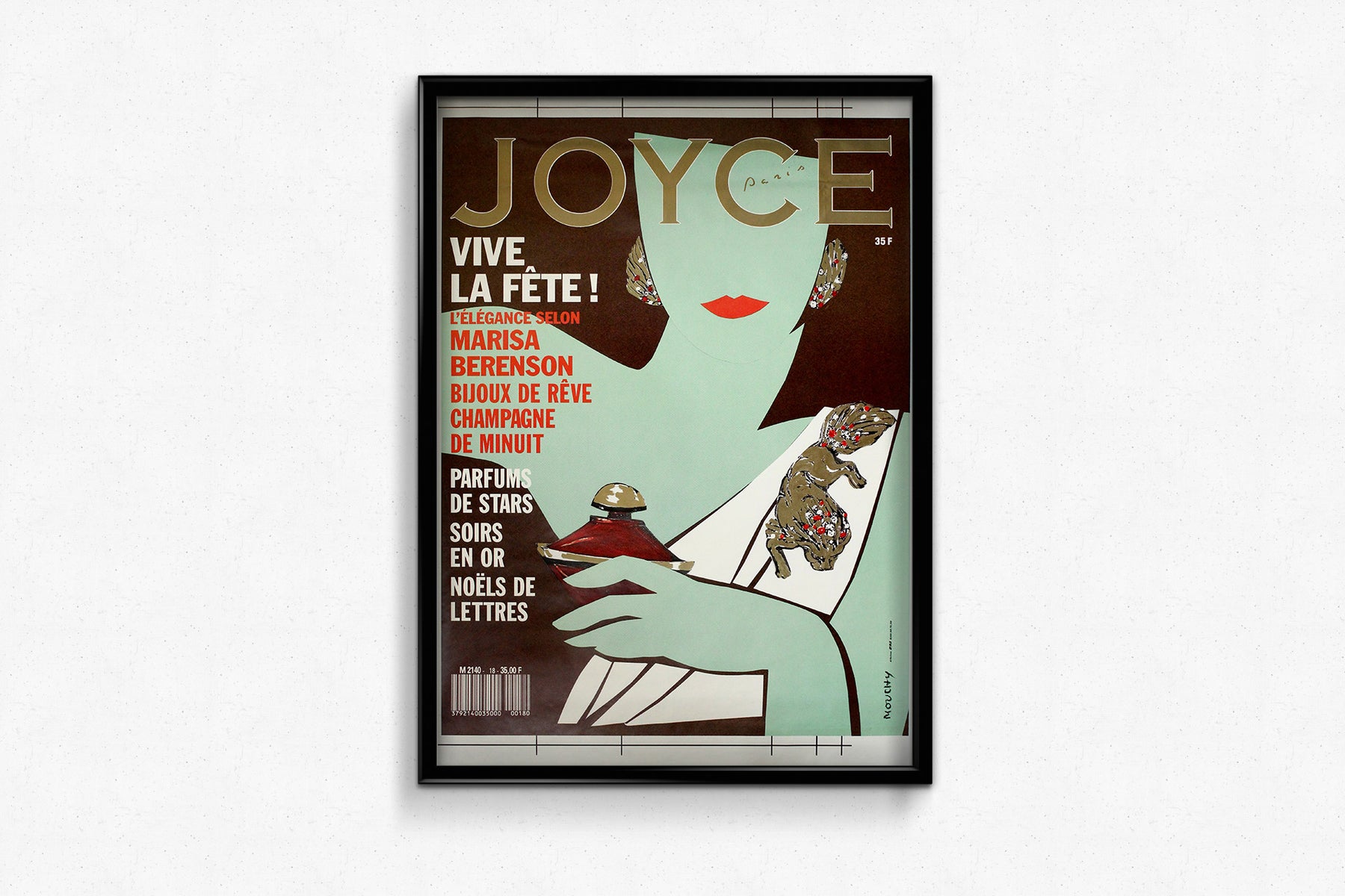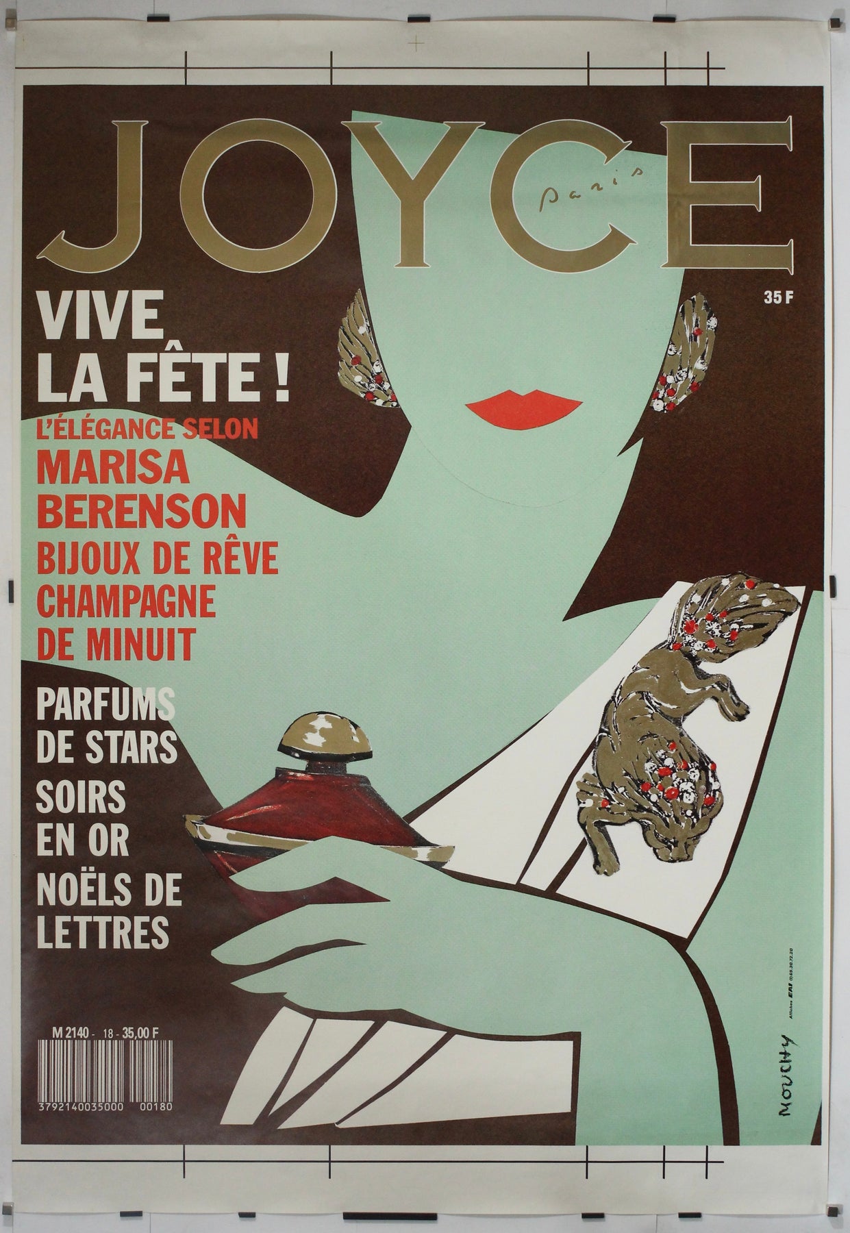 Véritable célébration de l'élégance parisienne et du glamour festif, cette affiche originale de 1988, conçue par Mouchy, a été créée pour Joyce Paris , le magazine français emblématique de mode et de style de vie.