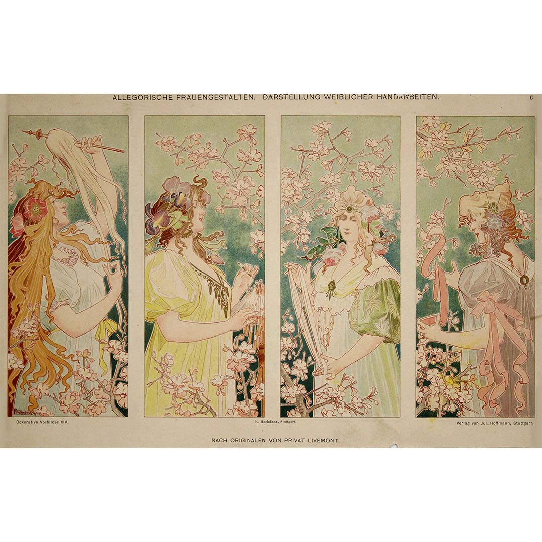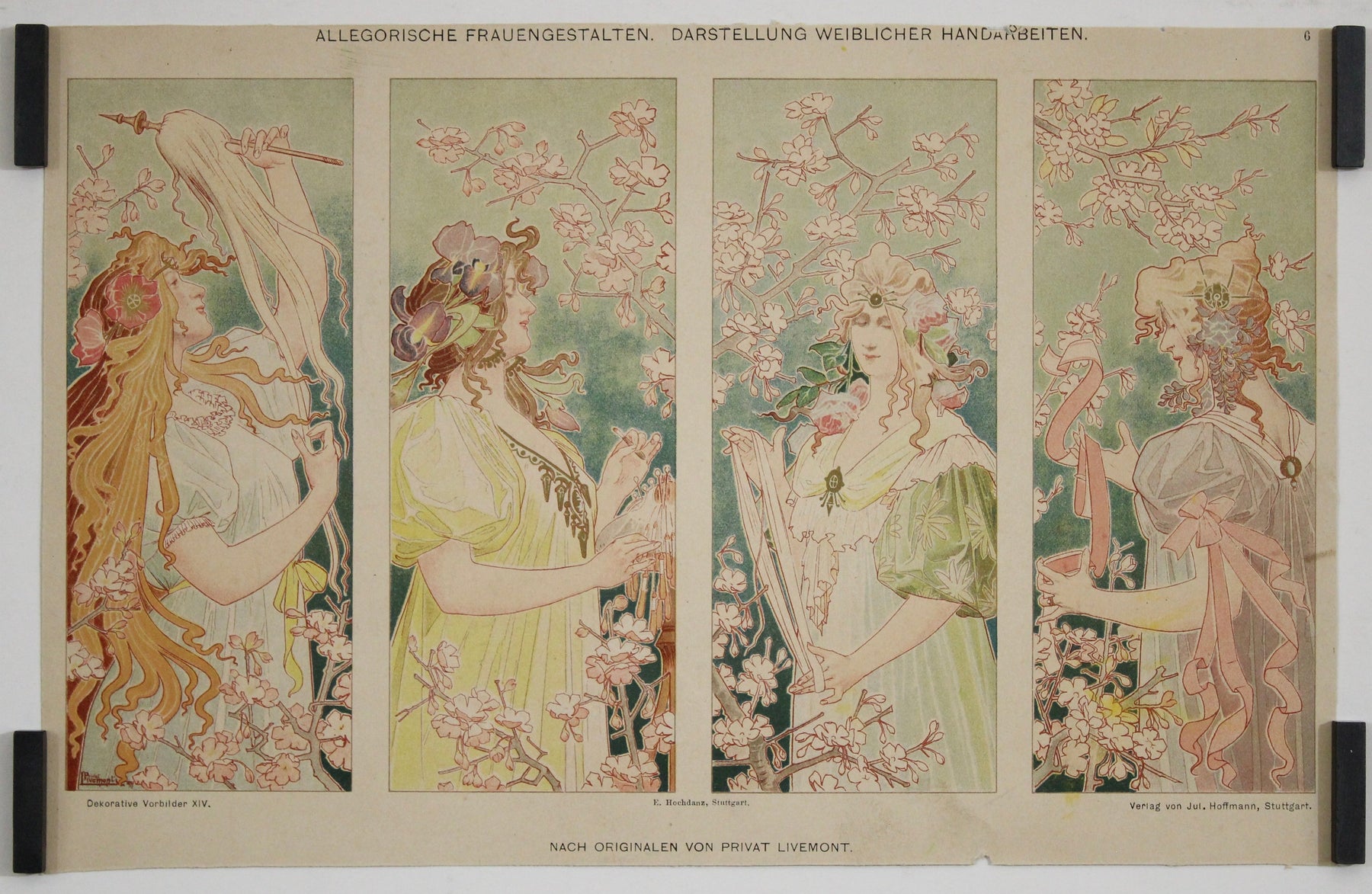 Aujourd'hui, les « Allegorische Frauengestalten » sont admirées non seulement pour leur valeur artistique, mais aussi comme un témoignage précieux de la culture visuelle Art nouveau, faisant écho à l'élégance stylistique des contemporains de Livemont, tels qu'Alphonse Mucha. Pièce originale rare et délicate, elle demeure un exemple sublime d'illustration décorative du début du XXe siècle.