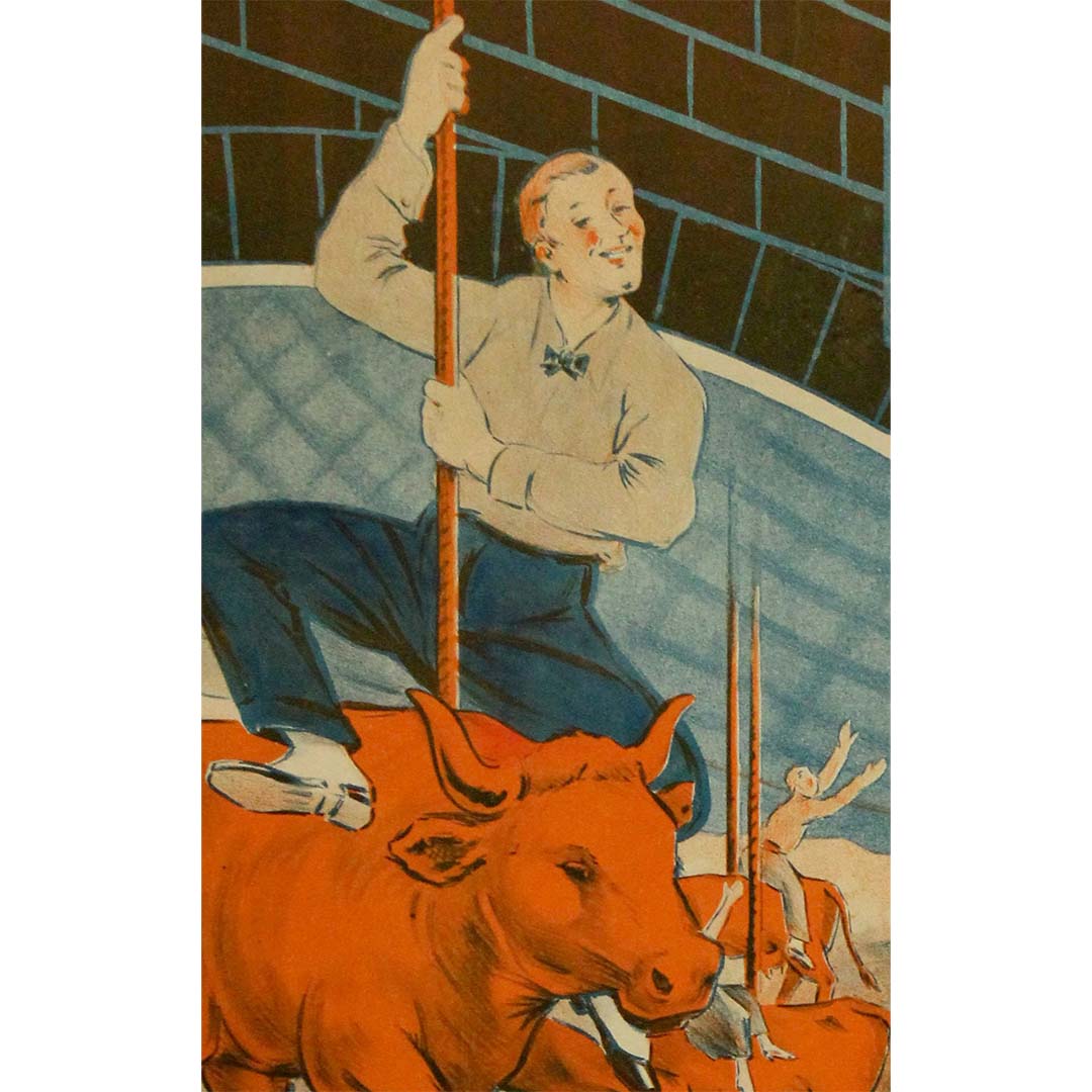 Prix régulier €1.000,00Cette affiche fantaisiste et pleine de vie de 1937 annonce la Grande Fête Foraine, organisée entre le pont de Neuilly et La Défense par les communes de Courbevoie et de Puteaux, à l'ouest de Paris. Réalisée avec un style narratif saisissant, l'image célèbre à la fois l'esprit festif de l'époque et l'essor des loisirs en banlieue dans la France de l'entre-deux-guerres.