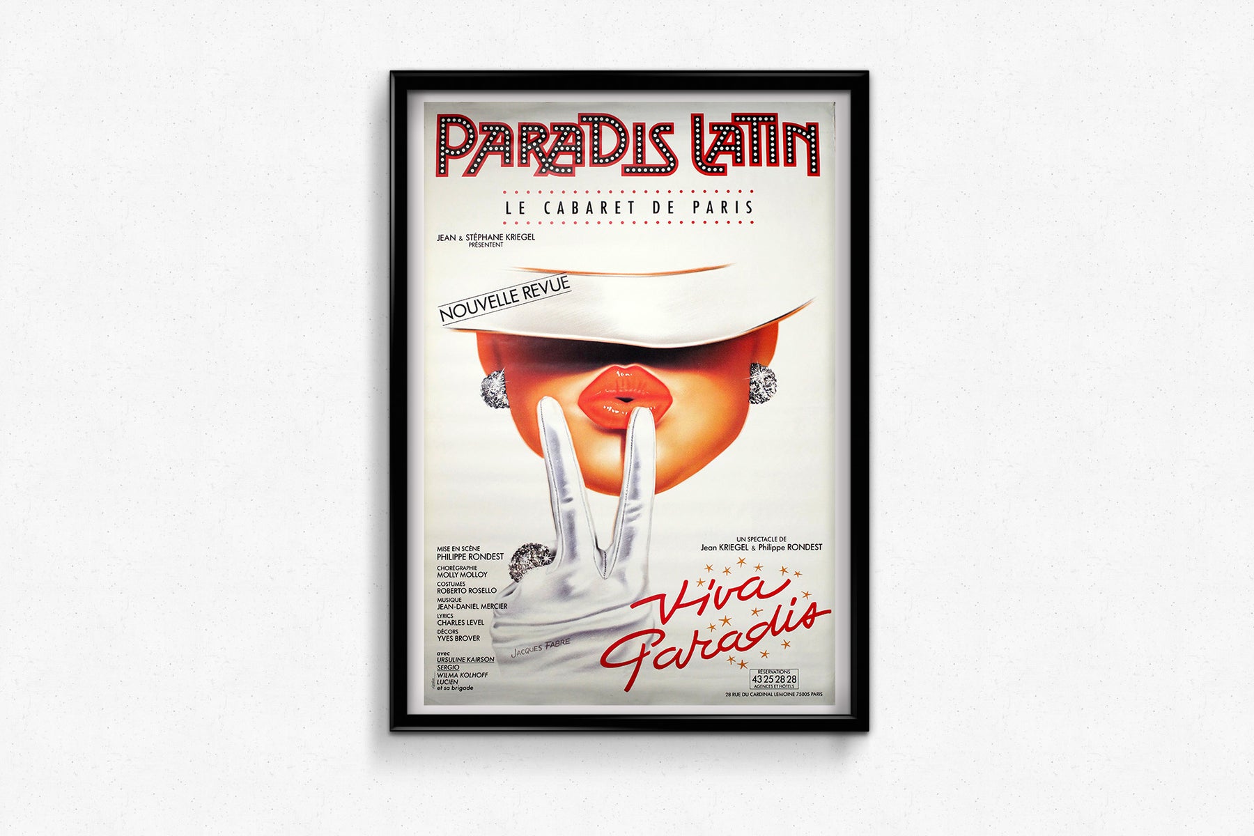 La signature discrète de Jacques Fabre , apposée dans un coin, évoque un style épuré et commercial, alliant audace graphique et élégance théâtrale. Son œuvre capture souvent l'esprit du spectacle vivant : glamour, exaltation et irrésistible.
