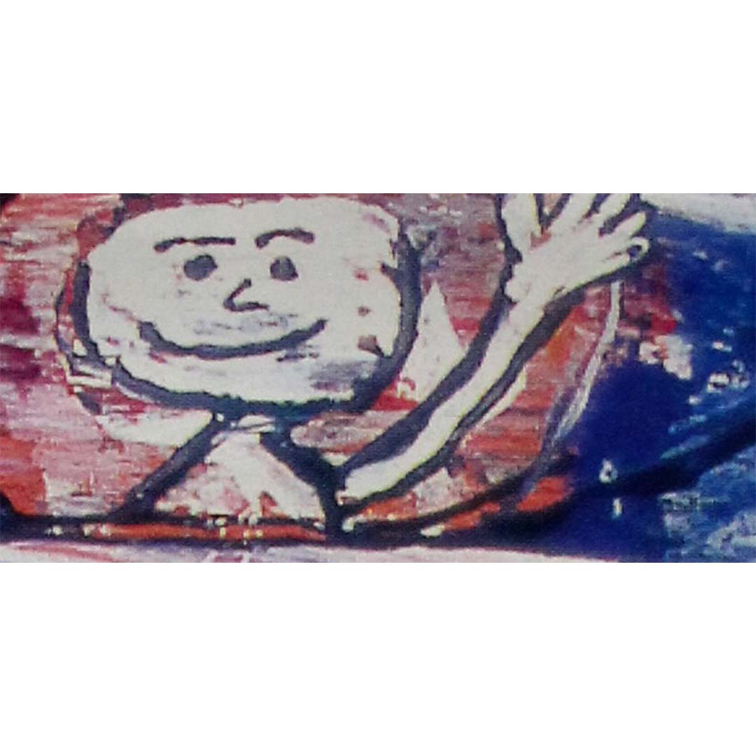 La composition qui sous-tend le texte est tirée d'une œuvre emblématique de Dubuffet, caractérisée par d'épais contours noirs, des visages fantaisistes et des traits spontanés, évoquant le graffiti. Elle traduit l'essence de la vie urbaine, de l'art brut et de l'inconscient, thèmes centraux de sa pratique.