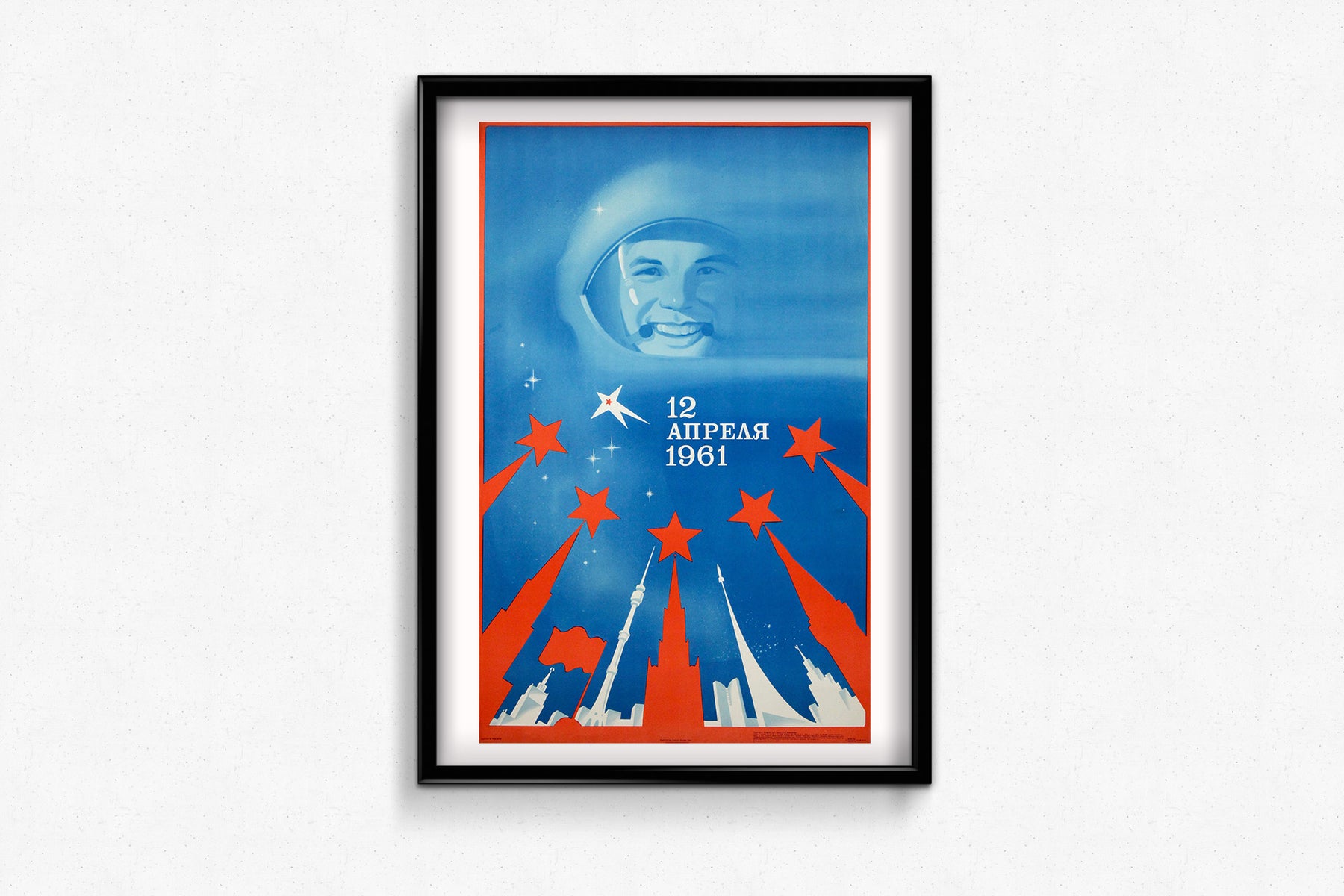 Beyond its celebratory purpose, the poster reflects how the Soviet Union used graphic art to communicate pride, unity, and ideological confidence during the Space Age. Today, it stands as a beautiful and evocative artifact from that era—capturing not only Gagarin’s legendary smile, but also the excitement, ambition, and cultural significance of the world’s first human journey into space.